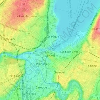 Nome: Mappa topografica Ginevra, altitudine, rilievo.
